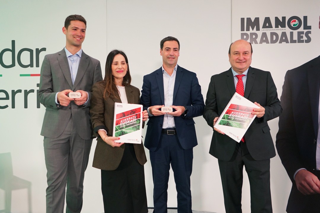 Imanol Pradalesek eta Andoni Ortuzarrek Eusko Legebiltzarrerako 2024 hauteskunde-programa aurkeztu dute