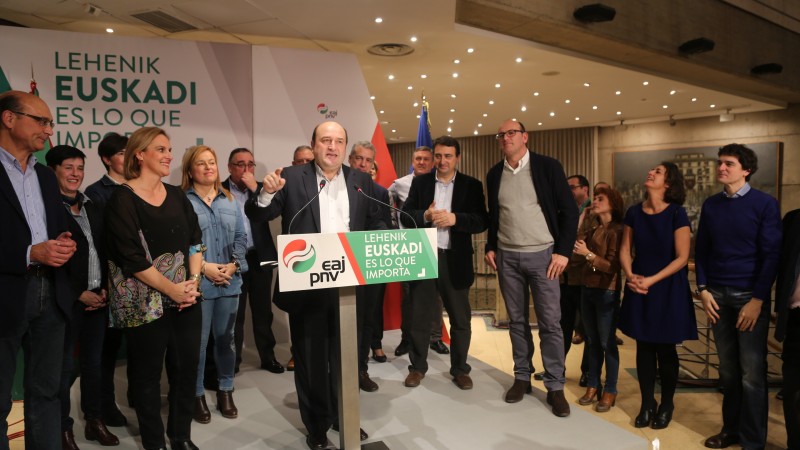 Andoni Ortuzarrek, Euzkadi Buru Batzarraren presidenteak, oso balorazio ona eman die EAJ-PNVk hauteskunde gau honetan eskuratu dituen emaitzei. Gaurko hauteskundeetan talde jeltzaleak aurreko legealdian baino diputatu bat gehiago lortu du eta Diputatuen Kongresuan 5 ordezkari izatetik, 6 izatera igaro da. “Gure posizioari eutsi diogu eta eserleku bat gehiago lortu dugu”, esan du; eta hori dena lortu dugu “euskal panorama politikoan alderdi politiko berriak agertu diren arren”. “EAJ-PNV finkatu egin da eta Madrilen Euskadiren ahotsa izaten segituko dugu” baieztatu du. Ortuzarrek azaldu duenez “emaitza globalak ikusita, gure sei eserlekuak, kanpainan esan bezala garrantzirik gabeak izan beharrean, oso indar politiko esanguratsua izango dute”.